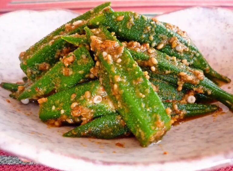 オクラのピリ辛ごま和え レシピ 2024.09.12 材料(2人分) オクラ 砂糖…大さじ1 醤油…大さじ1 豆板醤…小さじ1 すりごま…大さじ2 作り方 オクラを茹でた後食べやすい大きさに切り、ボウルに入れる。 材料すべてをボウルに入れてオクラとよく和える。