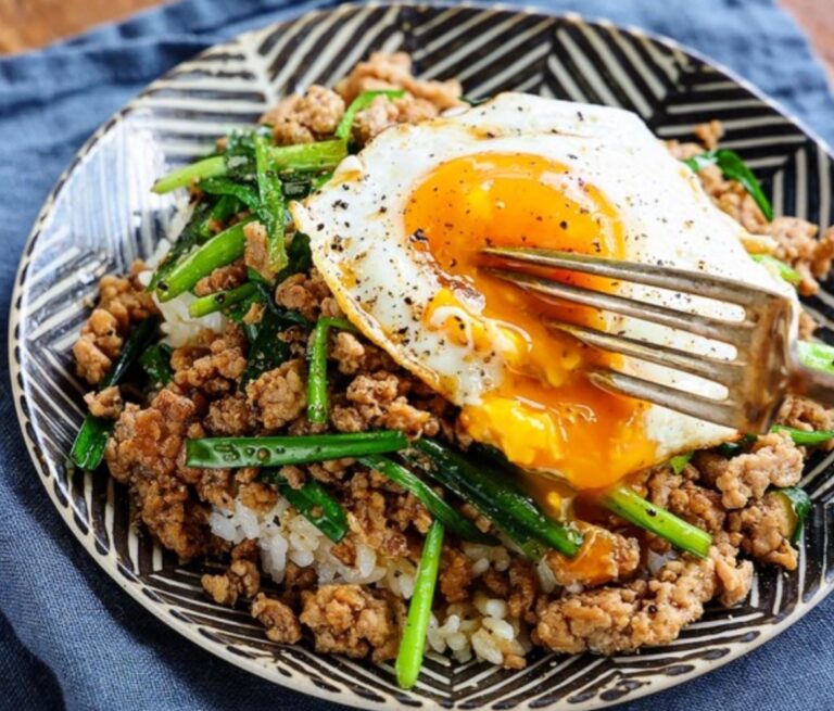 ひき肉とニラのスタミナ丼 レシピ 2025.03.17 材料 ひき肉…200g ニラ…1束 卵…2個 ごま油…大1/2 (A) 砂糖…小1 みりん…大1 醤油…大1 豆板醤…小1 オイスターソース…小1 にんにくチューブ…1cm 作り方 ニラを3cmの長さに切る。 フライパンで目玉焼きを作って取り出しておく。 そのままのフライパンでひき肉を炒め、火が通ったら(A)を加えて煮からめ、食べる直前にニラを加えさっと炒める。 器にごはんを盛り、(3)と(2)をのせ、黒こしょうを振る。