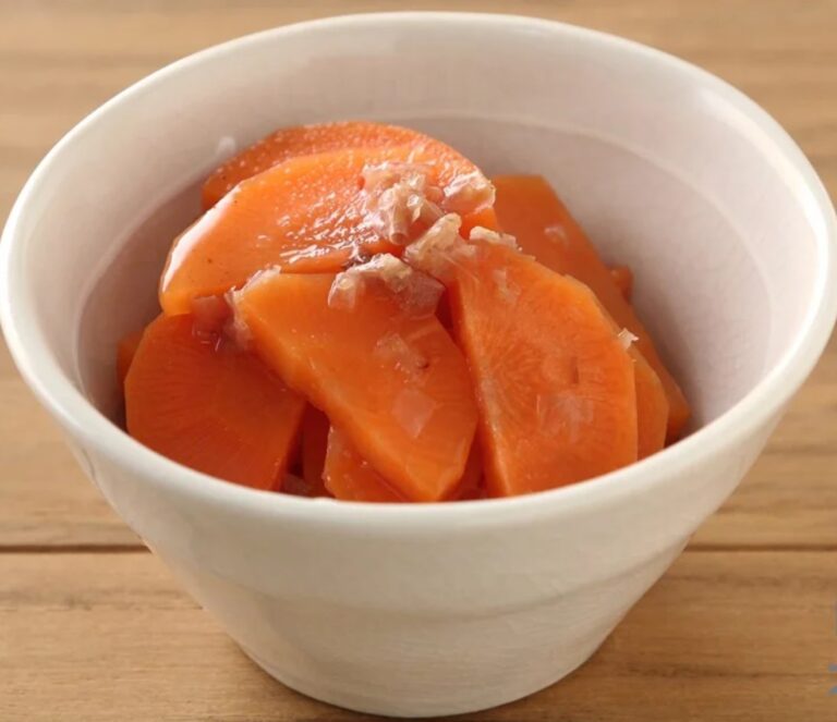 にんじんのお浸し レシピ 2025.05.27 材料 人参 水…100ml だしの素…小さじ1 かつおぶし 作り方 人参は5mm幅の半月切りにする。 鍋に材料すべてを入れて火にかけ、5~8分煮る。 仕上げに削り節を加えてサッとあえる。